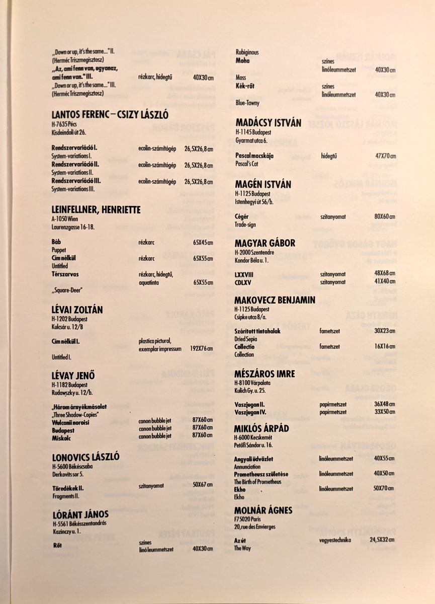 KIÁLLÍTOTT KÉPEK LISTÁJA-RÉSZLET