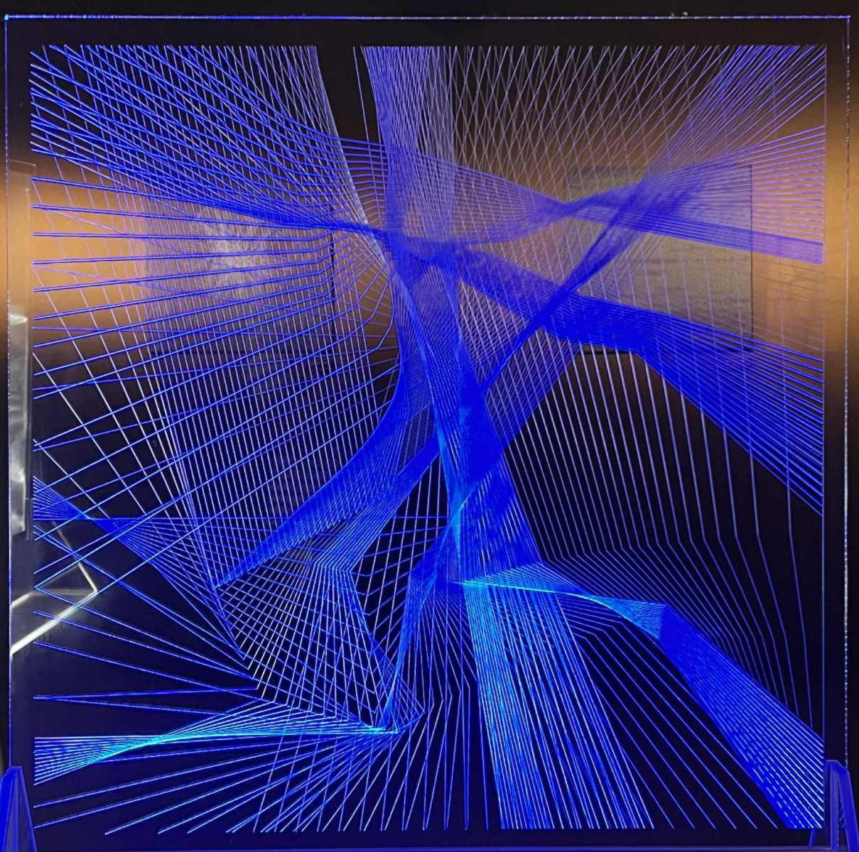 Legújabb munkáim “fényrajzok”. Víztiszta plexi lap két oldalára kerülnek a lézerrel gravírozott vonal-hálózatok. A plexi lemezt élből világítja meg egy LED-sor, így alakul ki a tiszta fényrajz. A gravírozott rétegek egymással kölcsönhatásba lépnek. A szemlélő a vonalcsuporok egymás fölötti elmozdulásait látja, számára folyton változó látvány-részletek keletkeznek. A síkból kilépünk a tér és az idő dimenziók irányába.